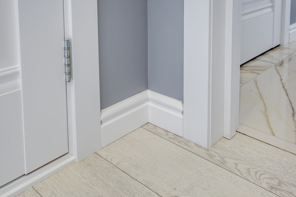 Baseboard Moulding: Essential for a polished look, baseboards cover the joint between the wall surface and the floor, providing both protection and style.